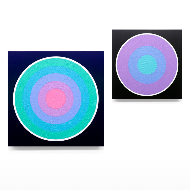 Adonai, acrylic and collaged wallpaper on canvas, 75 x 75 cm Amelia ii, acrylic and collaged wallpaper on canvas, 55 x 55 cm