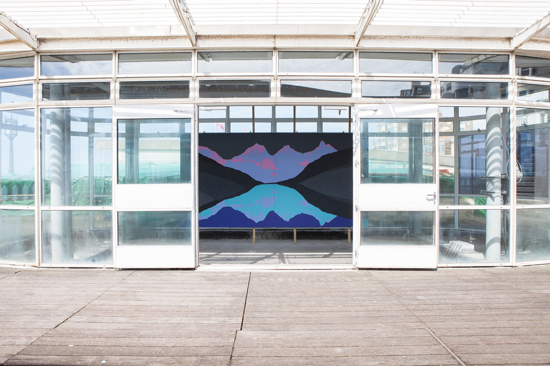 Hero, acrylic and collaged wallpaper on canvas, 200 x 400 cm / commissioned by Arts Council England for House Arts Festival, Brighton, UK