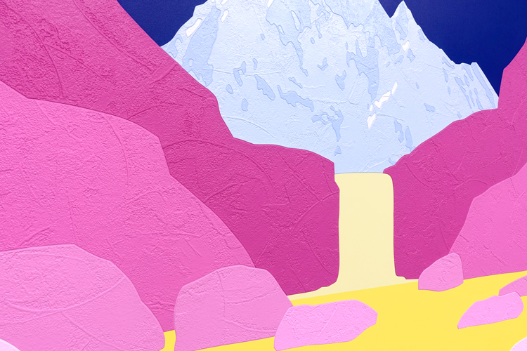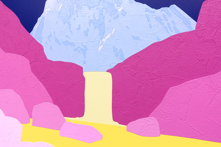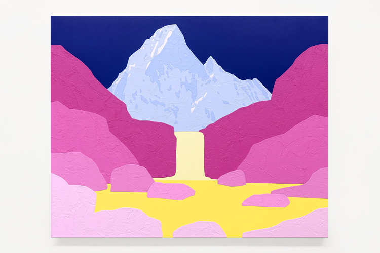 acrylic and collaged wallpaper on canvas