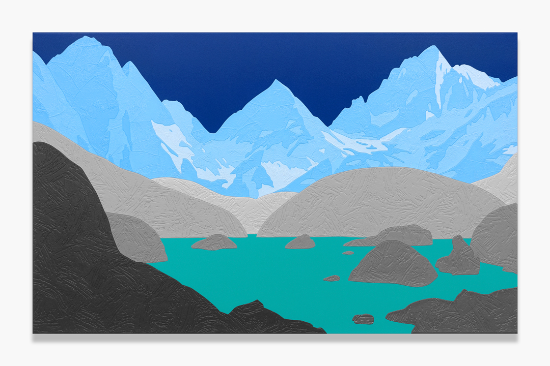 acrylic and collaged wallpaper on canvas
