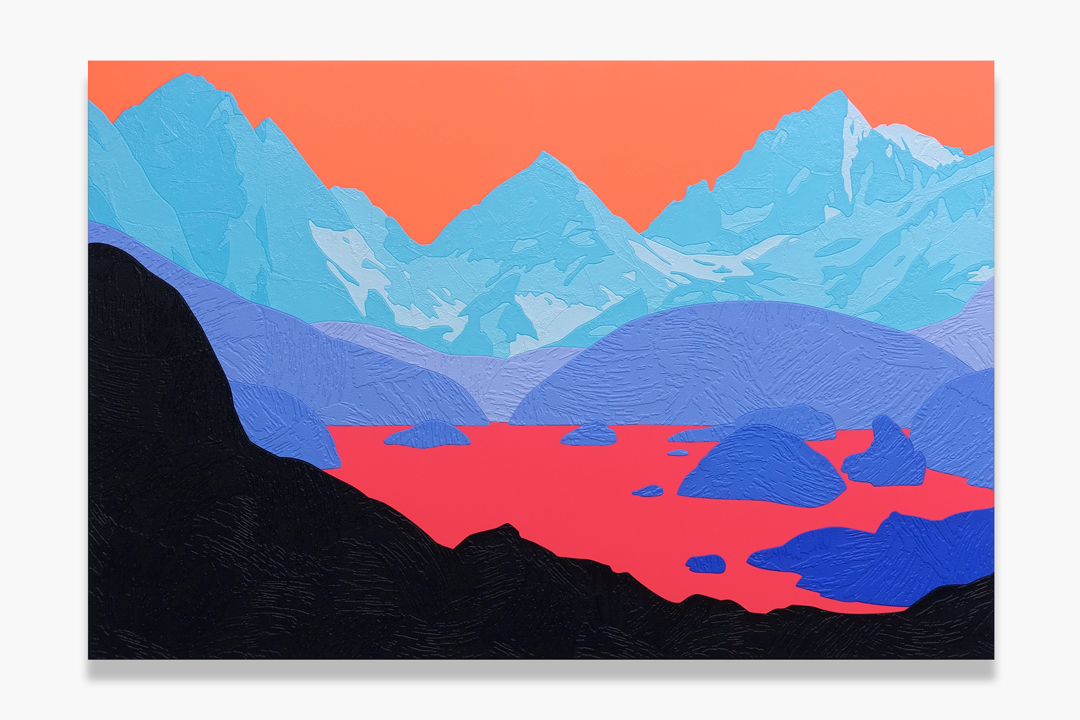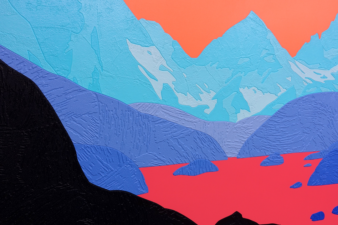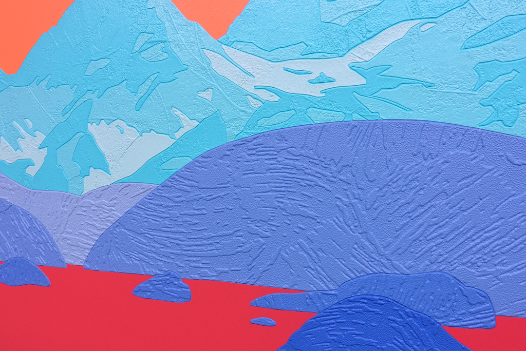 acrylic and collaged wallpaper on canvas