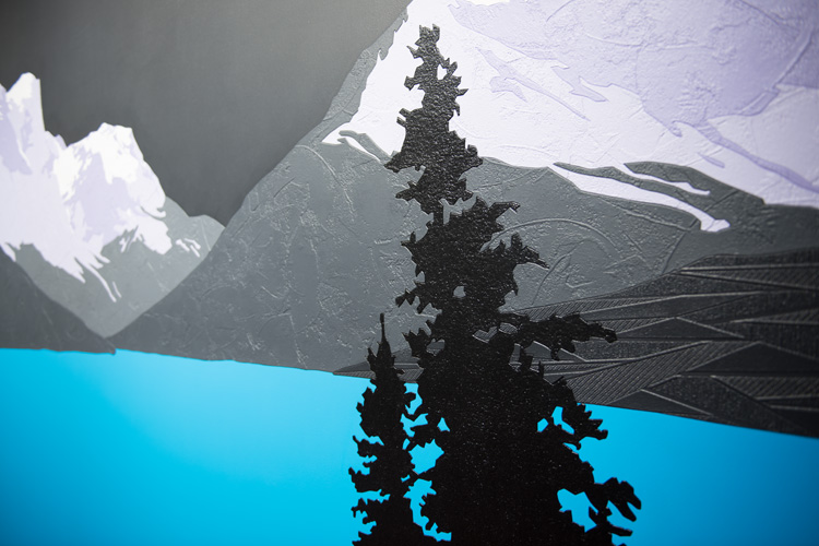 acrylic and collaged wallpaper on canvas