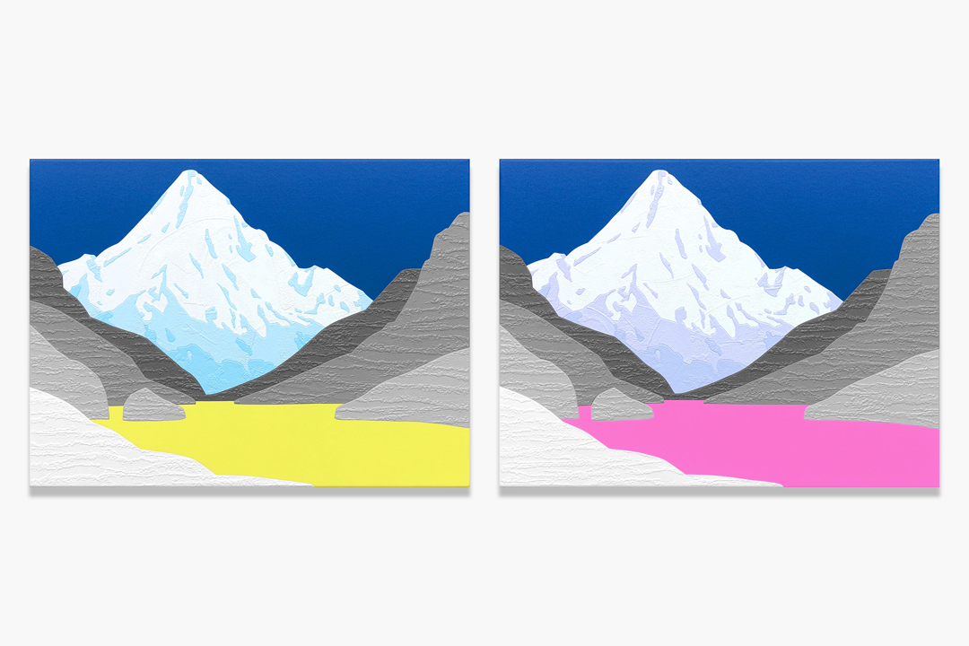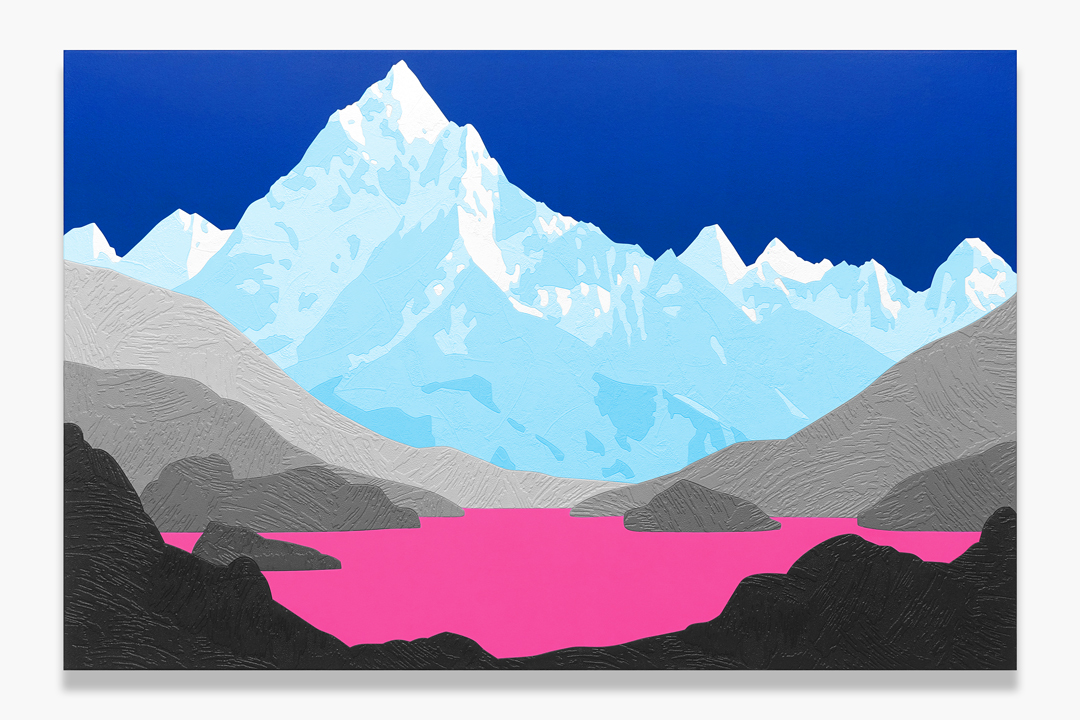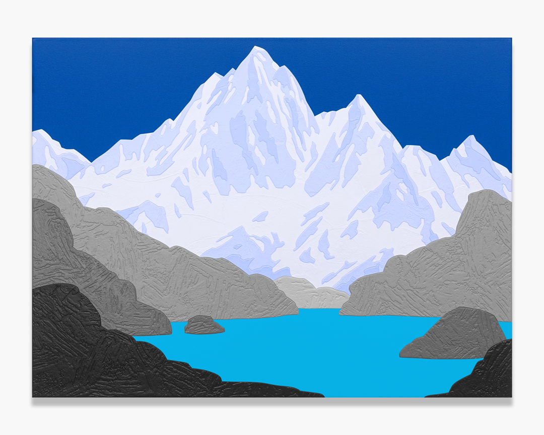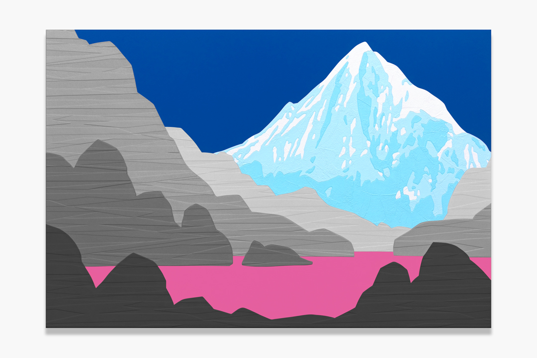 Pallas ix, acrylic and collaged wallpaper on canvas, 70 x 105 cm
