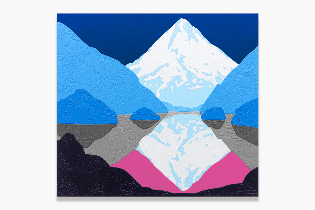 Cecily ii, reflection, acrylic and collaged wallpaper on canvas, 55 x 60 cm
