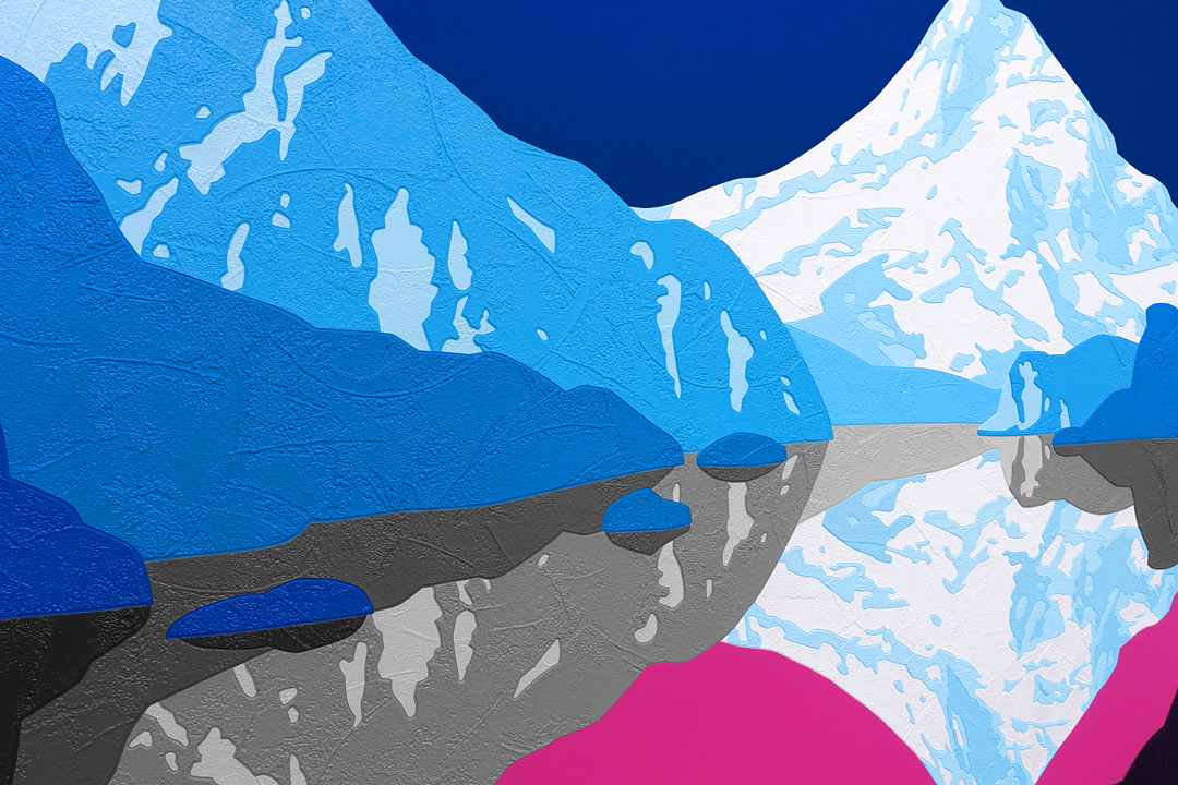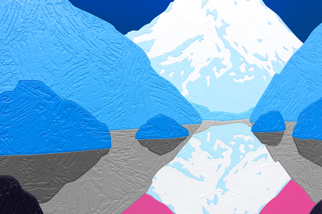 Phaedra, reflection, acrylic and collaged wallpaper on canvas, 90 x 120 cm