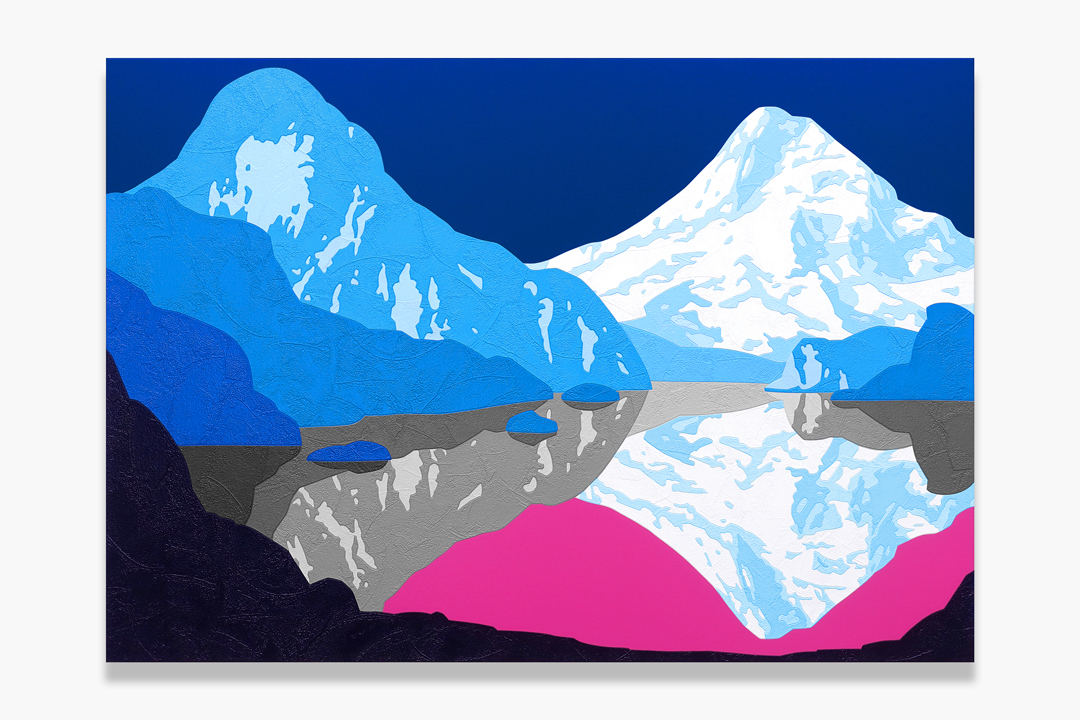 Lucretia ii, reflection, acrylic and collaged wallpaper on canvas, 90 x 130 cm