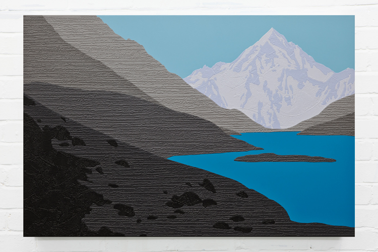 Celestine, 2015, acrylic and collaged wallpaper on canvas, 70 x 105 cm