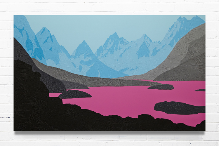 David Wightman: I grew up in a house completely decorated with textured wallpaper and began to incorporate it into my work soon after I moved to London from Greater Manchester. The textured wallpaper I use is a reference to my own background and also serves to illustrate the textures and contours of the fictional landscapes I paint. Colour has been a long obsession of mine too. My early work was